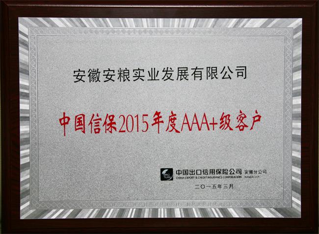 安糧實業(yè)獲中國信保2015年度AAA+級客戶稱號