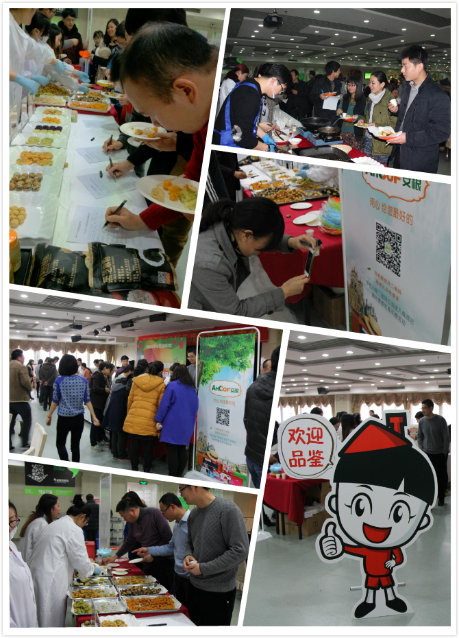 為了進(jìn)一步推廣“田田屋”、“安可福”兩大品牌旗下的全新產(chǎn)品, 安糧實(shí)業(yè)經(jīng)過精心策劃、認(rèn)真組織,在安糧員工餐廳開展了一場別開生面的新品品鑒和互動(dòng)活動(dòng)。此次活動(dòng)重點(diǎn)展示了包括冷凍調(diào)理食品、進(jìn)口紅酒、健康養(yǎng)生食品、進(jìn)口調(diào)理肉食在內(nèi)的四大系列新品。冷凍調(diào)理食品中的香口薯芝、五彩蔬菜烙、什錦魷魚圈、菇米花、香菇魷魚餅、花桂薯緣、翡翠蔬菜圈;健康養(yǎng)生食品中的雜糧粉飲品、茶樹菇、黑木耳、干筍衣、干香菇等產(chǎn)品均是首次亮相。大家一邊品嘗著盤中的美食、杯中的美酒,一邊認(rèn)真填寫調(diào)查問券對產(chǎn)品的色澤和口味做出評價(jià)。許多員工還對購買產(chǎn)品產(chǎn)生了濃厚興趣,紛紛在現(xiàn)場掃描微店二維碼,并開心地參加了抽獎(jiǎng)、拿到了心儀的贈(zèng)品。