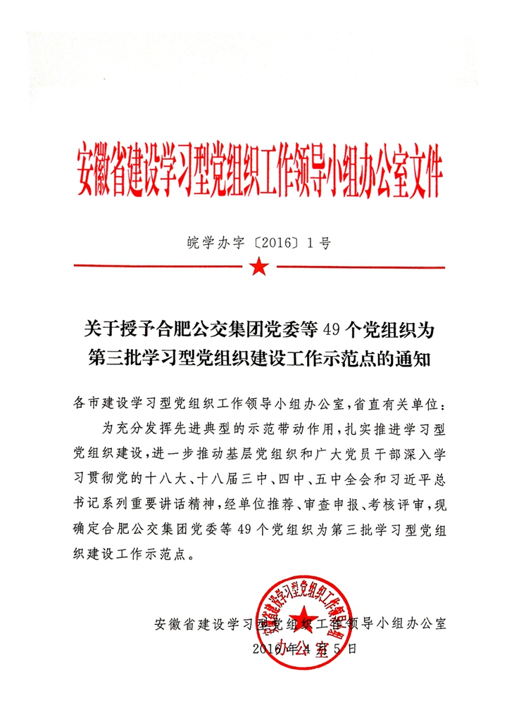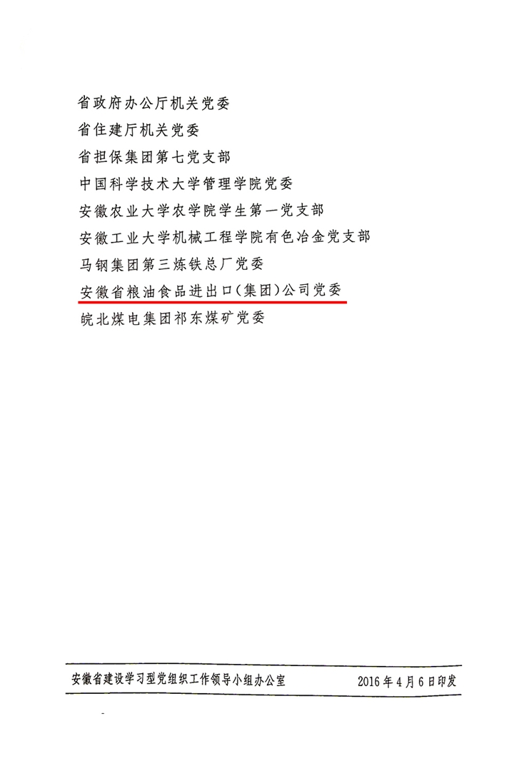 安糧集團(tuán)黨委榮獲“安徽省第三批學(xué)習(xí)型黨組織建設(shè)工作示范點(diǎn)”榮譽(yù)稱號