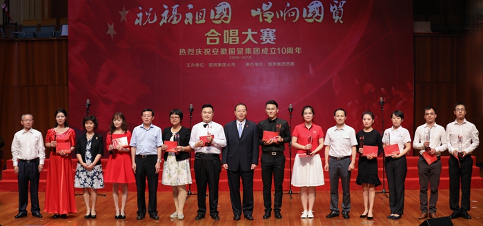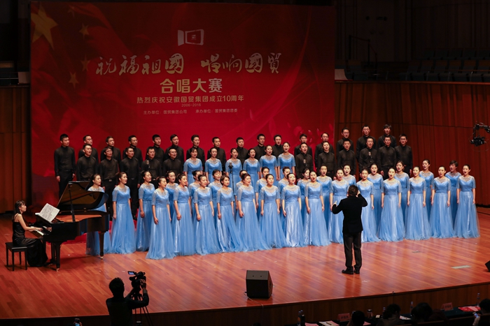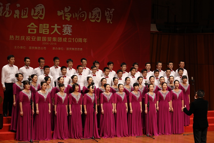2016年9月28日,為慶祝中華人民共和國67周年華誕、紀(jì)念國貿(mào)集團(tuán)成立10周年,由國貿(mào)集團(tuán)主辦的“祝福祖國,唱響國貿(mào)”合唱大賽在合肥大劇院隆重舉行。本次合唱比賽共有來自國貿(mào)系統(tǒng)的11支代表隊(duì)參加,其中安糧集團(tuán)派出兩支代表隊(duì),分別是由集團(tuán)本部、控股及控股除建工以外其他下屬企業(yè)員工組成的“糧安天下”合唱團(tuán)和由合肥建工組建的“基業(yè)長青”合唱團(tuán)。經(jīng)過激烈的角逐,“糧安天下”合唱團(tuán)最終一舉奪魁,“基業(yè)長青”合唱團(tuán)獲得三等獎(jiǎng)。