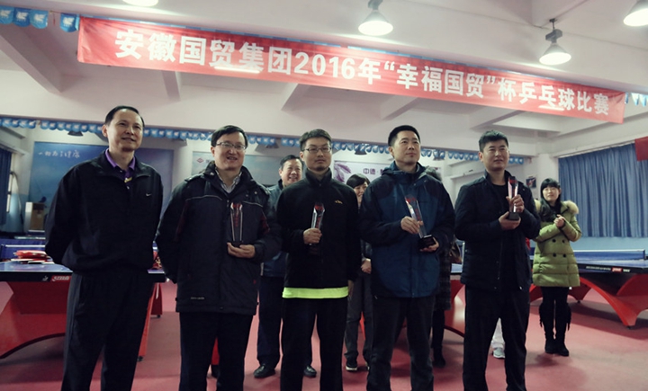 11月29日至30日,2016年“幸福國(guó)貿(mào)杯”乒乓球比賽在安徽省體育中心熱情上演。安糧集團(tuán)代表隊(duì)與來(lái)自國(guó)貿(mào)系統(tǒng)的兄弟公司代表隊(duì)展開(kāi)了團(tuán)體、男子單打、女子單打等三個(gè)項(xiàng)目的切磋對(duì)壘,最終取得團(tuán)體第四名的良好成績(jī)。
