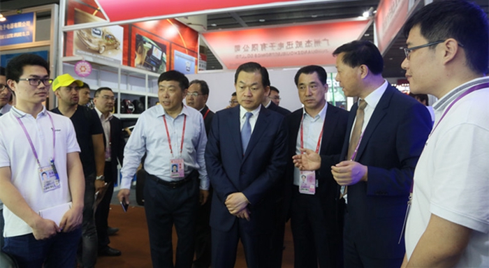 4月16日,第121屆廣交會第一期進入第二個展出日。上午9點半,張曙光副省長在省政府副秘書長趙振華、省商務廳廳長張箭、省出入境檢驗檢疫局局長呂小斌等陪同下,視察了安糧電子消費品及信息產(chǎn)品品牌展展位。安糧控股副總裁曹訓立接待了張副省長一行。