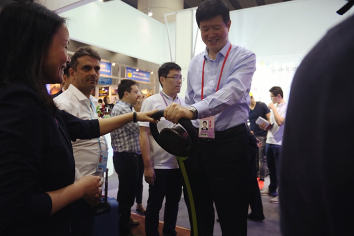 張副省長一行領導詳細詢問了安糧進出口業(yè)務經(jīng)營發(fā)展狀況,并對現(xiàn)場展出的安糧自主品牌——Spadger(賓雀)品牌平衡車、電動滑板車等出口新產(chǎn)品產(chǎn)生了濃厚興趣。省商務廳張箭廳長還親自體驗了展位熱點產(chǎn)品——Spadger(賓雀)平衡車的駕駛樂趣。