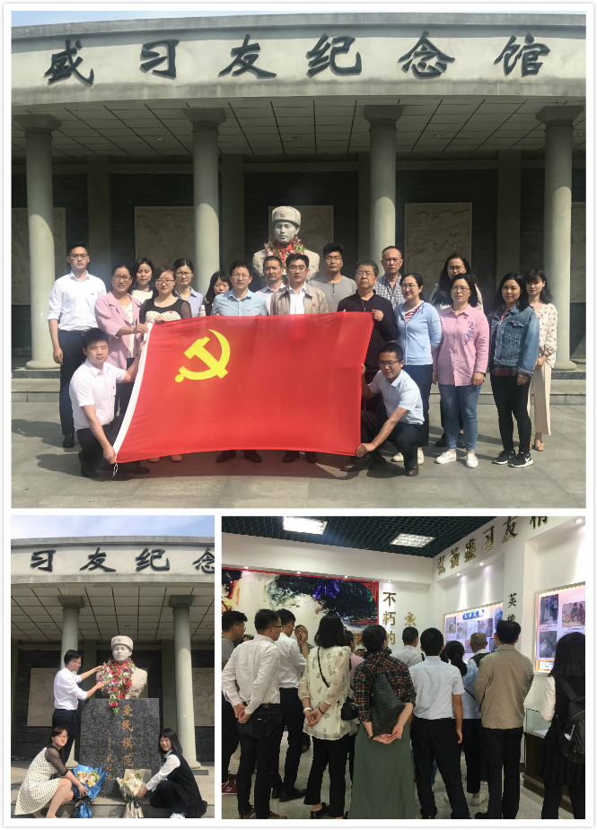 在紀念館前,黨員代表滿懷敬意,仔細地為盛習友紀念雕像擦拭灰塵,并向盛習友英雄敬獻了鮮花,隨后全體黨員在紀念雕像前重溫了入黨誓詞,并向英雄紀念雕像深深地三鞠躬。