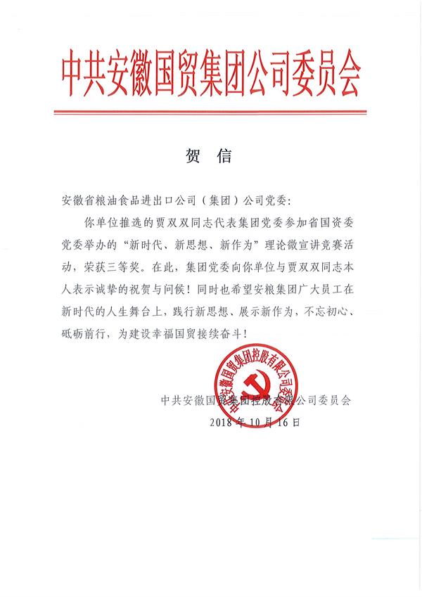 為深入學(xué)習(xí)宣傳習(xí)近平新時(shí)代中國特色社會(huì)主義思想,省國資委黨委近日組織開展了“新時(shí)代、新思想、新作為”理論微宣講競(jìng)賽活動(dòng),經(jīng)過國貿(mào)集團(tuán)系統(tǒng)內(nèi)層層選拔、好中擇優(yōu),安糧集團(tuán)推薦的選手--來自安糧置地的賈雙雙獲得了代表國貿(mào)集團(tuán)參加本次微宣講競(jìng)賽的資格,并最終在比賽中榮獲三等獎(jiǎng)。