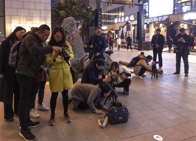 夜景拍攝非常講究技巧,會員們或蹲或趴的攝影姿勢也成了本次攝影課的一道風景。拍攝過程中,大家不斷探討各自的作品,請教老師拍攝要點,力求拍攝一張好照片。晚間的春風有些料峭,但會員們熱情洋溢,現(xiàn)場笑語不斷。