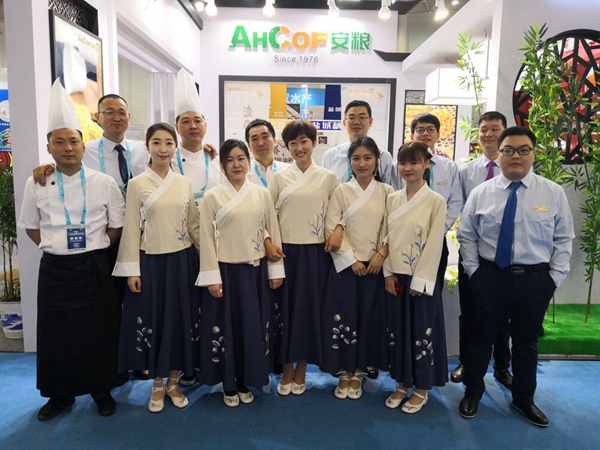 展會上,安糧實(shí)業(yè)的展臺延續(xù)去年頗受好評的徽派風(fēng)格,獨(dú)具一格的展位設(shè)計,身穿漢服的安糧姑娘“紅唇粉肌,青衣羅衫”穿梭在徽派建筑之間,讓人眼前一亮。