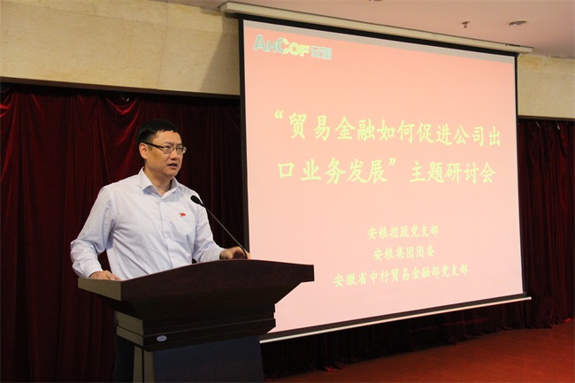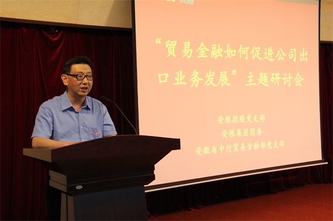 為強(qiáng)化企業(yè)黨建,加強(qiáng)黨團(tuán)建設(shè)結(jié)合,合力助推公司高質(zhì)量發(fā)展,在公司2019年經(jīng)營(yíng)指導(dǎo)思想引領(lǐng)下,2019年5月28日下午,安糧控股黨支部與安糧集團(tuán)團(tuán)委聯(lián)合安徽省中行貿(mào)易金融部黨支部在盛安廣場(chǎng)五樓多功能廳開展了“貿(mào)易金融如何促進(jìn)公司出口業(yè)務(wù)發(fā)展”主題研討會(huì)。省中行貿(mào)易金融部黨支部書記、總經(jīng)理何浩,副總經(jīng)理王光建,安糧集團(tuán)黨委委員、副總裁、工會(huì)主席周洪,安糧控股黨支部書記、國(guó)際結(jié)算總監(jiān)武義海等出席會(huì)議,各相關(guān)支部黨員、貿(mào)易板塊團(tuán)員青年及相關(guān)業(yè)務(wù)人員共六十余人參加。