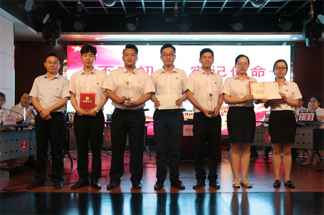 經(jīng)過支部考核、初賽等層層選拔,6支參賽隊伍最終脫穎而出,進入決賽。決賽題型分為選擇題、必答題、搶答題、風(fēng)險題和附加題,內(nèi)容涵蓋了習(xí)近平新時代中國特色社會主義思想、黨的十九大精神、黨章和黨內(nèi)法規(guī)、紀檢監(jiān)察、黨的歷史等內(nèi)容等相關(guān)知識。