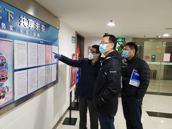 檢查組每到一處都深入了解該單位值班值守制度、疫情防治和防控要求的宣傳普及、清潔消毒、全員檢查排查、體溫檢測和登記、突發(fā)事件應急預案等各項工作的具體開展情況,在了解各單位近期疫情防控工作開展情況后,孫毅同志強調,安糧集團作為國有企業(yè),更要增強責任擔當,提高政治站位,聚焦外防輸入、內防擴散兩大關鍵環(huán)節(jié),精益求精、做實做細做好防控措施。他提出幾點要求:一是要狠抓兩項工作,堅持疫情防控和復工復產工作兩手抓、兩手硬,積極謀劃恢復生產經營準備,爭取早日全面復工;二是要確保兩大安全,即單位人員安全、資金安全,復工時要確保員工的防護用品特別是口罩的配備到位;三是要特別注意建筑工地施工人員的復工管理,嚴格按照屬地管理要求和上級單位部署做好復工申請,確保防控機制到位、人員摸排到位、物資準備到位、現場管控到位、應急處置到位、教育交底到位、安全措施到位;四是要突出聯防聯控,積極主動配合好有關部門開展防控工作,展現國企的擔當和作為。
