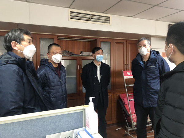 在盛安廣場一樓大廳,包總一行主動接受體溫測量和登記,現(xiàn)場檢查了測溫、消毒及人員進出登記工作,聽取了現(xiàn)場工作人員的情況匯報,對他們的辛勤工作表示慰問和感謝,充分肯定了公司疫情防控工作。