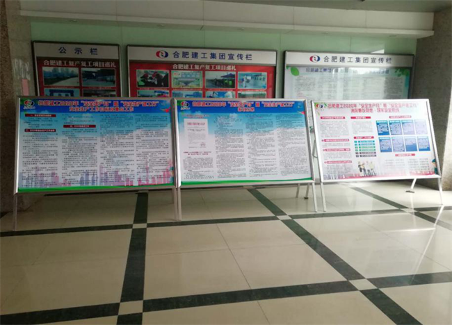 為切實增強全員安全生產(chǎn)意識和提升全員安全素質(zhì),合肥建工制作了“安全生產(chǎn)月”暨“安全生產(chǎn)建工行”宣傳展板在本部一樓大廳進行宣傳展示,各項目部在工程顯著位置張貼、懸掛“安全生產(chǎn)月”宣傳標語、橫幅、掛圖等,同時利用 LED 屏宣傳,在LED電子顯示屏上持續(xù)滾動播放安全公益廣告等,積極營造關(guān)心安全生產(chǎn)、參與安全發(fā)展的濃厚輿論氛圍。