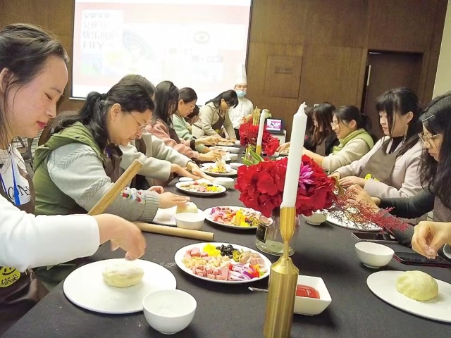 在裝扮精致的活動現(xiàn)場,專業(yè)的西餐老師詳細地為大家講解指導工具的使用、披薩的制作流程,女職工們“秒變”烘焙達人,一張張創(chuàng)意滿滿、香氣撲鼻的披薩相繼出爐,讓人垂涎欲滴。