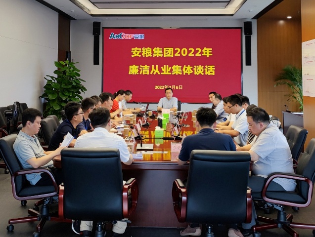 為進(jìn)一步推進(jìn)安糧集團(tuán)黨建工作開展,切實(shí)落實(shí)黨風(fēng)廉政建設(shè)責(zé)任制,增強(qiáng)安糧集團(tuán)各層級領(lǐng)導(dǎo)干部廉潔自律意識,教育和引導(dǎo)各部門主要負(fù)責(zé)人正確行使手中的權(quán)利,筑牢思想防線,根據(jù)安糧集團(tuán)黨委、紀(jì)委年度工作部署, 7月6日,安糧集團(tuán)對2022年新任職的領(lǐng)導(dǎo)人員開展廉潔從業(yè)集體談話。集團(tuán)黨委副書記、紀(jì)委書記孫毅出席會(huì)議并講話,集團(tuán)總助、紀(jì)委副書記仲勁松主持會(huì)議。