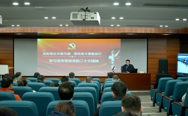 何汝才書記為安糧國際50余名黨員作了“深刻領(lǐng)會豐富內(nèi)涵 團結(jié)奮斗勇毅前行——學(xué)習(xí)宣傳貫徹黨的二十大精神”主題宣講。 他從深刻領(lǐng)會黨的二十大會議的重要意義、精神實質(zhì)、弘揚偉大建黨精神、深刻領(lǐng)會以中國式現(xiàn)代化推進中華民族偉大復(fù)興的歷史重任等四個方面系統(tǒng)、深入地解讀了黨的二十大精神重大意義、主題內(nèi)涵及核心內(nèi)容,并結(jié)合海螺集團、安徽國貿(mào)的發(fā)展對所有黨員干部作出要求。他強調(diào),學(xué)習(xí)宣傳貫徹黨的二十大精神是公司當前和今后一個時期的重大政治任務(wù),要深刻領(lǐng)會黨的二十大報告對堅定不移全面從嚴治黨、深入推進新時代黨的建設(shè)偉大工程作出的重要部署;要堅持學(xué)思用貫通,聚焦主責(zé)主業(yè),堅持高質(zhì)量發(fā)展,切實把黨的二十大精神落實到各項具體工作和實際行動中,展現(xiàn)更大擔(dān)當作為,為海螺集團“爭創(chuàng)世界一流企業(yè)”貢獻更大力量。