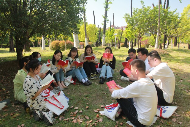 參觀結(jié)束后,團(tuán)支部在博物院草坪開展了“弘揚(yáng)優(yōu)秀傳統(tǒng)文化,肩負(fù)時(shí)代使命擔(dān)當(dāng)”的主題團(tuán)課活動(dòng)。團(tuán)支部書記董清代表安糧國(guó)際黨總支部向團(tuán)員們贈(zèng)送了《黨的二十大報(bào)告輔導(dǎo)百問(wèn)》書籍和團(tuán)支部定制的五四主題紀(jì)念款帆布包,并帶領(lǐng)團(tuán)員一起學(xué)習(xí)了《黨的二十大報(bào)告輔導(dǎo)百問(wèn)》第12講、第61講和第67講內(nèi)容,結(jié)合前面的參觀展覽,圍繞“傳承中華傳統(tǒng)文化”、增強(qiáng)“四個(gè)自信”等主題與團(tuán)員們互動(dòng)交流。團(tuán)員青年們就參觀感想、學(xué)習(xí)內(nèi)容暢所欲言,并表示:“博物館是立德樹人的思政課堂,走進(jìn)三星堆,讀懂中華文明,探尋歷史之根,深深地激發(fā)了對(duì)中國(guó)優(yōu)秀傳統(tǒng)文化的自豪感”。