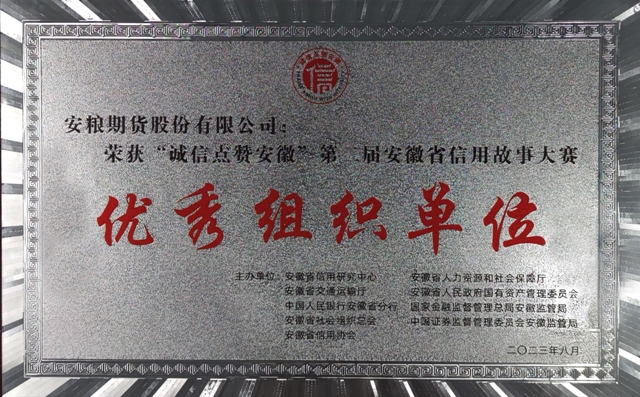 9月6日下午,由安徽省信用研究中心、安徽省人力資源和社會(huì)保障廳、安徽省交通運(yùn)輸廳、安徽省人民政府國有資產(chǎn)監(jiān)督管理委員會(huì)、中國人民銀行安徽省分行、國家金融監(jiān)督管理總局安徽監(jiān)管局、中國證券監(jiān)督管理委員會(huì)安徽監(jiān)管局、安徽省社會(huì)組織總會(huì)、安徽省信用協(xié)會(huì)等單位共同組織開展的“誠信點(diǎn)贊安徽”第二屆安徽省信用故事大賽活動(dòng)圓滿落幕。經(jīng)過網(wǎng)絡(luò)投票和專家評(píng)審,安糧期貨喜獲佳績,榮獲“優(yōu)秀組織單位獎(jiǎng)”,員工謝雙雙、鄭茜、劉永龍分別獲得征文類優(yōu)秀獎(jiǎng)、演講類優(yōu)秀獎(jiǎng)、微電影優(yōu)秀獎(jiǎng)。在全省證券期貨參賽隊(duì)伍中名列前茅。