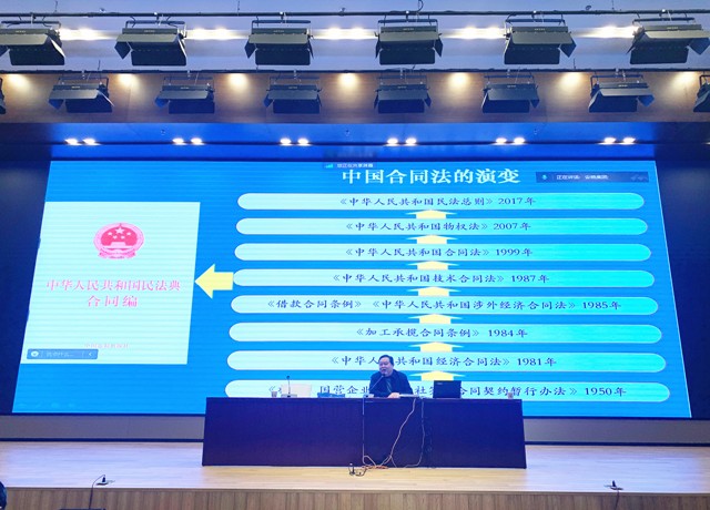 安徽大學(xué)法學(xué)院副教授於恒強(qiáng)圍繞合同法律風(fēng)險(xiǎn)做了講解,對(duì)《民法典》合同編中主要合同類型進(jìn)行介紹,闡釋了在合同訂立過程中存在的風(fēng)險(xiǎn),并濃縮了二十條防風(fēng)險(xiǎn)要點(diǎn),以通俗易懂的語言為廣大員工提供工作指引。