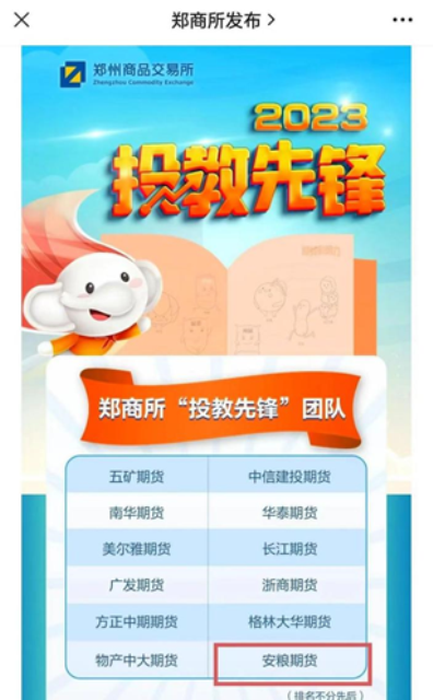 喜訊丨安糧期貨榮獲鄭商所2023年 “投教先鋒”稱號(hào)