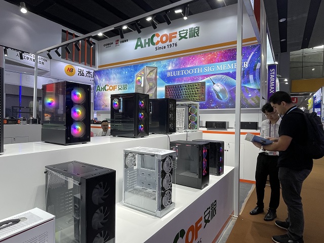 南方一部在本屆廣交會一期主要參展游戲電腦機箱產(chǎn)品,從入門級到高端游戲機箱齊全。部門在營銷展示上采用一系列新穎的形式,展臺的主通道采用目前比較流行的魚缸游戲機箱作為看點,用可藍牙連接手機和電腦的高端游戲機箱吸引客戶。為了突出參展效果,所有游戲機箱都裝上了RGB變色風扇。多樣化的變色風扇與南方二部的機械鍵盤吸引了大量客戶駐足觀看。消費電子展6個攤位,突出游戲類產(chǎn)品的裝修風格,搭配大氣的門頭、顯眼的海報燈箱,使客戶在進館時只需一眼就能夠鎖定目光。