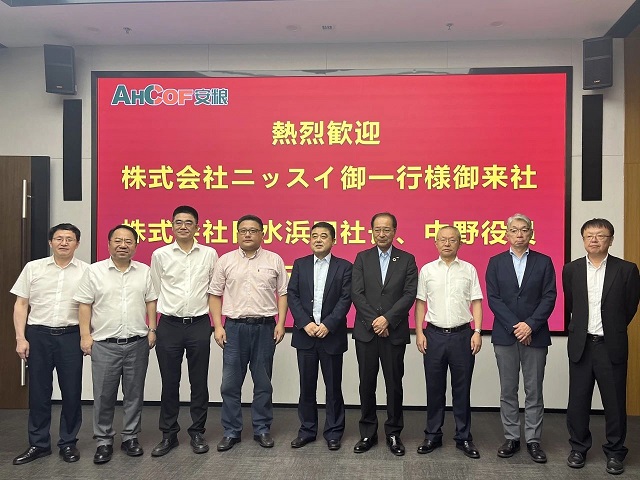 7月2日,日水浜田社長一行在安糧集團總裁楊曉剛陪同下,抵達安糧實業(yè)直屬工廠——巢湖嘉誼食品有限公司(以下簡稱“巢湖嘉誼”)進行訪問。座談會上雙方圍繞著良好的合作歷史、目前合作業(yè)務(wù)開展情況以及未來合作發(fā)展方向等議題深入交流,希望借助日水品牌的全球影響力,充分發(fā)揮日水創(chuàng)新研發(fā)技術(shù)優(yōu)勢和安糧制造優(yōu)勢,不斷推出特色新產(chǎn)品開拓國內(nèi)外市場。會上,楊曉剛表示未來安糧食品產(chǎn)業(yè)園規(guī)劃專設(shè)日水產(chǎn)品業(yè)務(wù)板塊,希望可以在日水產(chǎn)品進口、日水技術(shù)安糧加工、開發(fā)中國市場方面進行全方位合作,推動雙方友好合作再上新臺階。隨后,日水浜田社長一行參觀了工廠的生產(chǎn)車間,工廠負責(zé)人重點介紹了安糧旗下兩家日水合作工廠巢湖嘉誼和安慶嘉潤吸收合并、業(yè)務(wù)整合及相關(guān)工廠改造具體情況,同時詳細介紹了日水產(chǎn)品生產(chǎn)全過程,各工序嚴格的品質(zhì)控制得到了日水一行的肯定。