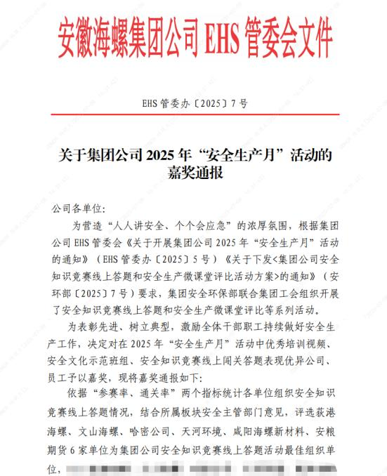 近日,集團(tuán)公司對(duì)在2025年“安全生產(chǎn)月”活動(dòng)中表現(xiàn)突出的單位和個(gè)人予以表彰,安糧期貨堅(jiān)決落實(shí)集團(tuán)公司部署要求,廣泛發(fā)動(dòng)員工積極參與,獲評(píng)活動(dòng)最佳組織單位。