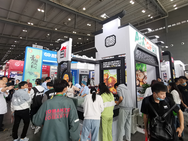安糧實業(yè)展臺設(shè)計延續(xù)了往年廣受好評的徽派建筑設(shè)計模版,粉墻黛瓦成為一道亮麗的風景線。全新設(shè)計的產(chǎn)品宣傳冊高端精致, 黃金薯條、親嘴藕丸等新產(chǎn)品也引起了同行和觀眾的極大興趣,紛紛表示希望在展會結(jié)束后進行深度對接。