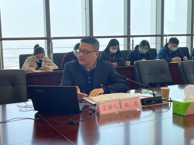 安徽國貿(mào)黨委副書記陶軍走進(jìn)安糧集團宣講黨的十九屆六中全會精神